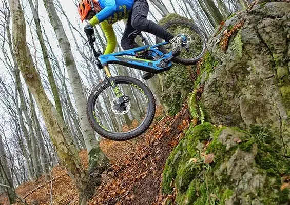 Wszelkie porównania do mieszczucha musiałem jednak odszczekać po wjechaniu w konkretny teren. Co prawda na stromych podjazdach trzeba się mocno pochylić nad kierownicą, ale dopóki tylne koło ma przyczepność, podjechać można praktycznie pod każdą ściankę. W takich sytuacjach niezwykle pomaga zawieszenie o dużym skoku, które, miękko ustawione, zapewnia znakomitą trakcję. Na zjazdach wyprostowana pozycja dodaje sporo punktów do odwagi, pozwalając na pracę ciałem i odpowiednie dociążenie przodu na zakrętach lub zawiśnięcie tyłkiem nad tylnym kołem na ekstremalnych stromiznach. Skuteczne hamulce zapewniają komfort zwolnienia lub zatrzymania się dokładnie tam, gdzie tego potrzebujemy. Dzięki dużej masie, na zjazdach, Atom Lynx jest jak taran, wydaje się, że przejedzie przez wszystko. Zawieszenie i bardzo dobre amortyzatory odwalają znakomitą robotę, niwelując nierówności, ale nie pozbawiając czucia tego, po czym się jedzie. W powietrzu Atom Lynx jest stabilny, choć gwałtowne poderwanie prawie 24 kilogramów wymaga sporej dynamiki, a także siły mięśni nóg i grzbietu. Lądowania, w porównaniu z rowerami o połowę lżejszymi, przypominają te na motocyklu crossowym. Duże brawa za skrętność tego roweru. Tak, wcześniej napisałem, że to taran, ale bynajmniej nie tak „prostolinijny”. Atom Lynx łatwo skręca, do tego stopnia, że dla niedoświadczonych rowerzystów może to ocierać się o nadmierną nerwowość. Doświadczonym bikerom pozwoli jednak na wciśnięcie się w każdą zakrętową „agrafkę”. Jedyne, czego brakowało mi w rowerze o takiej terenowej dzielności, to szersze opony. 2,35’’ to nie jest mało, ale miałem wrażenie, że 2,5-2,6 cala lepiej pasowałyby do 160 milimetrowego skoku przedniej i tylnej amortyzacji. Dzięki temu, zarówno na podjazdach jak i na zjazdach dałoby się z Lynxa wycisnąć jeszcze więcej. Gdybym miał szu...