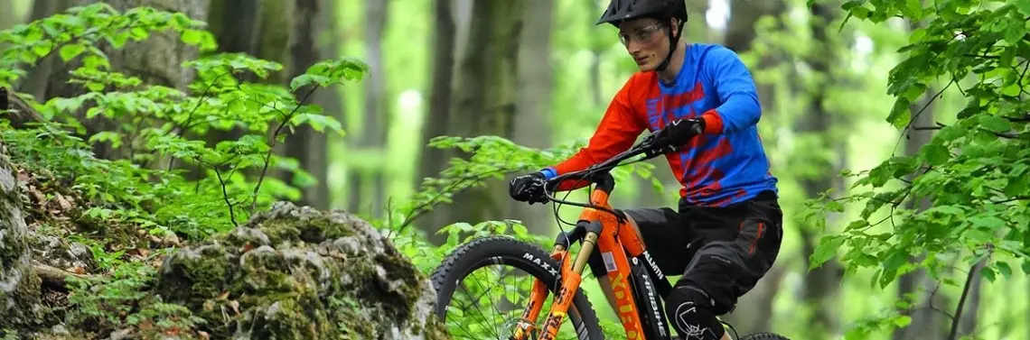 Testowana maszyna wspomagana jest silnikiem Yamahy w najmocniejszej wersji PW-X. Mimo upływu lat jest to najlepszy silnik na podjazdach ze względu na swój wysoki moment obrotowy przy niskich prędkościach i samym ruszaniu. Denerwujące jest tylko drżenie i poszarpywanie na postoju, kiedy to obciążamy jedną korbę. Napędem steruje się wygodnie umieszczoną manetką z wyświetlaczem. Pięć poziomów wspomagania to za dużo, trzy byłyby wystarczające. Różnica między High a EXPW jest na tyle niewielka, że z High należałoby zrezygnować. Nadmiar prowadzi do niepotrzebnej komplikacji i może rodzić błędy. Najużyteczniejszy okazał się tryb STD. Na dojeździe nie drenuje baterii, a w terenie pozwala na precyzyjne dawkowanie mocy przy pokonywaniu technicznych przeszkód i wciąż wygodne podjeżdżanie. Potężne koła z oponami szerokości 2,8” dają tyle trakcji i przyczepności w zakrętach, że spokojnie można atakować każdą stromiznę i zakręty nawet o odwrotnym ukształtowaniu. Mimo cyferek w tabeli rower pozostaje zwrotny na tyle, na ile można się spodziewać po „czołgu na plus(z)owych oponach”. Jest to zasługa sztywnego bocznie widelca i kół, które bezpośrednio przekazują polecenia z kierownicy. Długi tył nie upośledza skręcania, a pomaga opanować moment obrotowy silnika i zapobiega podrywaniu przedniego koła na stromiznach. Pozycja na rowerze nie wymusza przemieszczania środka ciężkości w celu dociążenia koła, co mniej wprawnym pozwala czerpać więcej radości z jazdy. Ewentualne uślizgi również łatwiej wyczuć. Zawieszenie wespół z oponami niweluje nierówności terenu, można je jednak ustawić także tak, aby przekazywało nam informację zwrotną, po czym jedziemy. Nad rowerem zaskakująco łatwo panuje się w locie, a przy okazji nie trzeba się martwić o lądowanie, bo pokaźna ilość skoku zawieszenia w parze z mocnymi kołami i mięsistymi gumami pozwala bez problemu przyziemiać na czymkolwiek, wliczając korzenie. Zresztą po „złotych” Foxach oczekujemy rewelacyjnej pracy – i ją dostajemy. Hamulce XT z czterema tłoczkami świetnie radzą sobie z rozpędzoną masą. Dwunastorzędowy napęd X01 Eagle daje swobodę doboru kadencji w każdych warunkach, a specjalnie zmodyfikowana manetka pozwala redukować tylko o jedno przełożenie na raz, co zabezpiecza łańcuch i tylną przerzutkę przed przeciążeniami czy nawet uszkodzeniem.