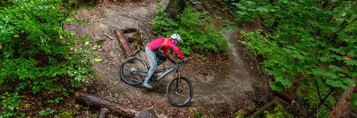 Ależ on obłędnie wygląda! Pozycja za kierownicą jest dość rozciągnięta, a siodełko wycofane względem suportu ciut bardziej niż u najnowocześniejszej konkurencji. W geometrii mierzonej statycznie nie ma z tym problemu, jednak po włączeniu do obliczeń SAG-u oraz dość nisko umieszczonej kierownicy okazuje się, że łatwiej byłoby wkręcać się na duże obroty z bardziej stromym masztem podsiodłowym, niestety, nawet przy dużym SAG-u suport umieszczony jest zauważalnie (za) wysoko. Pomaga to na kamienistych podjazdach i niestety nigdzie więcej. Theos to nieodrodny mullet i mimo długiego wahacza zacieśnianie skrętów wychodzi doskonale. Nie trzeba dużo zachodu, żeby wprowadzić tył w kontrolowany poślizg. Ale w warunkach słabej przyczepności może to deprymować początkujących. W pozostałych sytuacjach Kellys jest bardzo łatwy w obsłudze na trasach flow i nie będzie przeszkadzał nawet mniej obeznanym. Nie wymaga przesadnej gimnastyki, aby wejść w bandę, i raźno trzyma przyczepność. Wahacz można ustawić na naprawdę miękko i na błotnistych beskidzkich szlakach pełnię szczęścia osiągnąłem dopiero przy 33% SAG-u. Co prawda zawiecha muli wówczas strasznie, ale doskonale pasuje to gliniastym i bardzo śliskim nawierzchniom. Fox 38