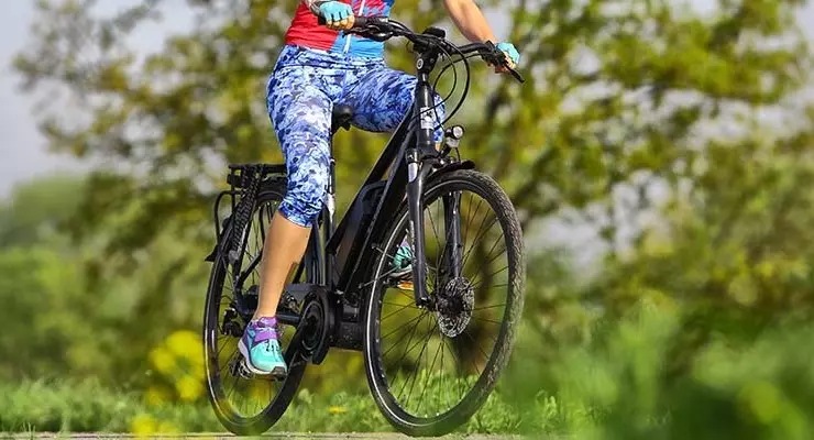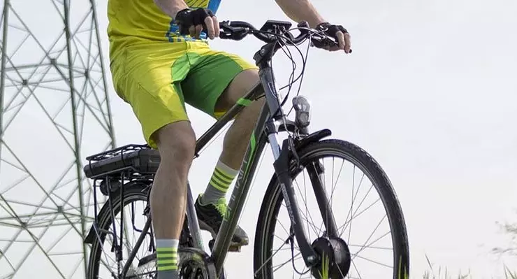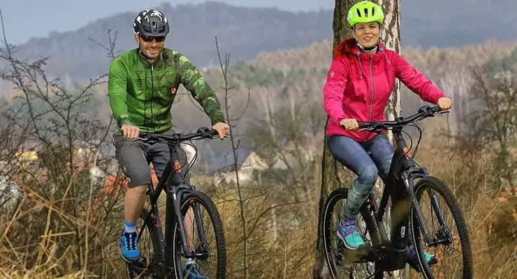 Nie tylko widać, ale przede wszystkim naprawdę czuć te starania i to w wielu aspektach. Zaczyna się od możliwości wyboru kształtu ramy najlepiej pasującej do oczekiwań użytkownika. My testowaliśmy wersję damską z obniżoną górną rurą ramy ułatwiającą wsiadanie, ale oferowana jest również wersja zupełnie pozbawiona górnej rury, dzięki czemu praktycznie wcale nie trzeba podnosić nogi przy wsiadaniu i zsiadaniu. Idealna dla osób starszych lub z większą tuszą. Dopełnieniem oferty jest też oczywiście klasyczna wersja męska. Projekt geometrii, w którym siodło znajduje się znacznie poniżej wysoko zawieszonego kokpitu, to kolejny z zabiegów mających zasadniczy wpływ na wygodę jazdy. Pozwala przyjąć wyprostowaną pozycję, praktycznie bez zginania pleców, z większością ciężaru spoczywającą na siedzeniu, jak w samochodzie. Pozycję można w niewielkim zakresie dopasować, korzystając z regulowanego kąta wznosu wspornika kierownicy. Zmieniając jego ustawienie w zakresie od 0 do 90°, wpływamy zarówno na wysokość kierownicy, jak i jej odległość od siodła. Wiedząc, że ciężar użytkownika będzie w głównej mierze spoczywał na siodle, projektanci zadbali o to, aby zapewnić jak najlepszą izolację od niepożądanych wstrząsów. Pierwszym elementem jest siodło o bardzo dużej szerokości (w wersji damskiej jest to aż 202 mm, męskie jest węższe o 20 mm). Wypełnione jest żelem 3D Skingel, którego gęstość jest tak dobrana, że daje odczucie miękkości i pochłania wiele z dokuczliwych drobnych drgań, ale zarazem „cztery litery” nie zapadają się jak w pluszowy fotel, co wbrew temu, co myśli wielu niedzielnych rowerzystów, nie jest zjawiskiem korzystnym. Dodatkowo podstawa siodła jest elastyczna i tak zaprojektowana, aby umożliwiać mu niewielkie ugięcia, co też ma wpływa na amortyzację wstrząsów i drgań. Remedium na większe nierówności jest amortyzowany wspornik siodła Suntour NCX o skoku 50 mm. Oparty jest na stalowej sprężynie, której napięcie wstępne można regulować w bardzo szerokim zakresie, dopasowując działanie wspornika do masy użytkowania. Przy moich 70 kg wymagało to zastosowania prawie minimalnego naprężenia, ale muszę przyznać, że wspornik radził sobie zupełnie dobrze i wraz z siodłem stanowią naprawdę skuteczny duet – odważę się napisać, że porównywalny z amortyzacją tylnego koła o niewielkim skoku. Z przodu dzielnie partneruje mu amortyzator Suntour o skoku 63 mm, którego efektywność w zastosowaniu trekkingowym oceniam na całkiem dobrą. Dopełnieniem komfortu i bezpieczeństwa jazdy są opony Schwalbe Energizer Plus, model specjalnie przeznaczonych dla e-rowerów. Bieżnik w środkowej części ma płaski profil, dzięki któremu po asfalcie opony toczą się lekko i gładko. Boki pokryte są klockami w kształcie diamentów, zapewniając dobrą przyczepność nawet na nieutwardzonej drodze. Bieżnik wykonany jest z mieszanki gumy Addix E optymalizowanej pod kątem trwałości, niskich oporów toczenia i przyczepności nawet przy dużych prędkościach. Opony mają dużą objętość, co wpływa zarówno na komfort, jak i odporność na uszkodzenia. Dodatkowo chronione są przez wkładkę antyprzebiciową GreenGuard o grubości 3 mm umieszczoną po czołem bieżnika.