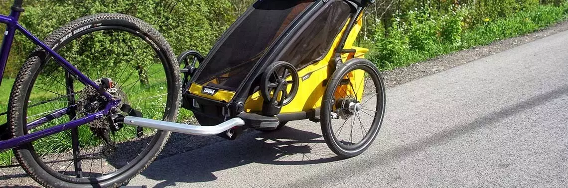 Po podpięciu do roweru przednie kółka przekłada się w pozycję marszową na drugą stronę gniazd mocujących. Dzięki temu są cały czas pod ręką i bardzo szybko można je ponownie założyć po zatrzymaniu. Złożony uchwyt do pchania stanowi element wzmacniający konstrukcję i dodatkową ochronę pasażera w razie wywrotki.